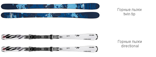 С двойными носками (Twin Tip) – задняя и передняя часть лыжи округлена и загнута вверх. Используются для выполнения трюков во фристайле.