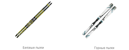 Горные лыжи – предназначены для спуска с горных склонов и в горнолыжном спорте.