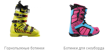Ботинки для горных лыж и сноуборда классифицируются одинаково и выполнены с учетом анатомических особенностей мужских, женских и детских ног.